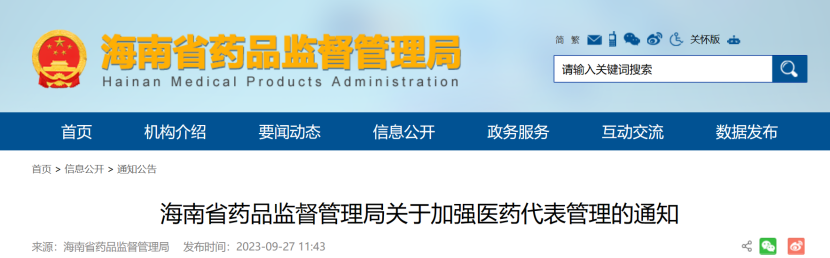 近日,海南省药监局发布《海南省药品监督管理局关于加强医药代表管理的通知》(以下简称《通知》)。