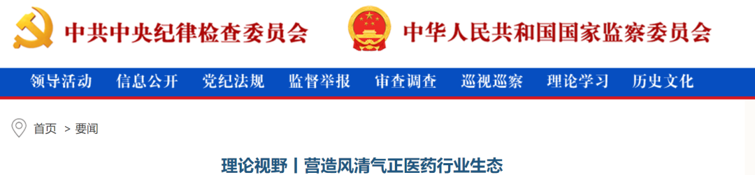 4月11日,中纪委官网发布题为《理论视野丨营造风清气正医药行业生态》文章。提出要紧盯领导干部等“关键少数”以及药品耗材、器械采购、检验检查、行政后勤等关键岗位。